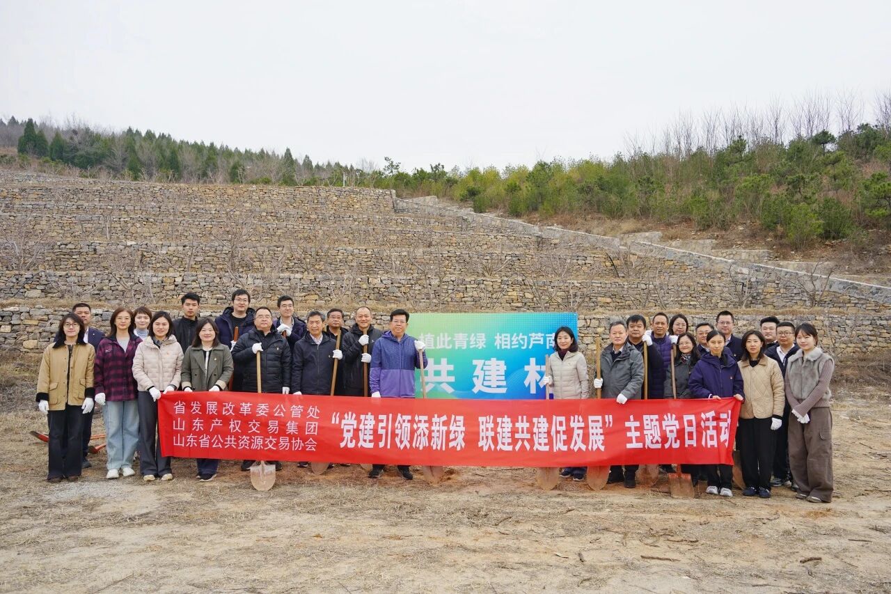 春回大地,生機(jī)勃發(fā)。為深入踐行習(xí)近平生態(tài)文明思想,充分發(fā)揮黨建引領(lǐng)作用,3月13日,在植樹節(jié)到來之際,山東產(chǎn)權(quán)集團(tuán)聯(lián)合省發(fā)展改革委公管處、山東省公共資源交易協(xié)會(huì)到濟(jì)南市歷城區(qū)蘆南村共同開展“黨建引領(lǐng)添新綠聯(lián)建共建促發(fā)展”植樹主題黨日活動(dòng)。省發(fā)展改革委公管處處長、一級調(diào)研員胡敬濤,一級調(diào)研員李廣忠,二級調(diào)研員孟慶國,山東產(chǎn)權(quán)集團(tuán)黨委書記、董事長張莉,黨委副書記、總經(jīng)理王東凱參加活動(dòng)。 活動(dòng)現(xiàn)場,大家熱情高漲、干勁十足,自發(fā)組成植樹小組,揮鍬鏟土、扶苗填坑,各個(gè)環(huán)節(jié)井然有序,配合默契。經(jīng)過一番辛勤勞作,一株株新植樹苗在春風(fēng)中昂然挺立,為初春的山野增添了勃勃生機(jī)。植樹結(jié)束后,全體人員參觀了蘆南村村史館、村原址及現(xiàn)代化溫室大棚,深入了解這個(gè)曾經(jīng)的貧困村通過支部帶頭、干群聯(lián)動(dòng),二十年如一日封山造林、修復(fù)生態(tài),實(shí)現(xiàn)從“賣石頭”到“賣風(fēng)景”的綠色蝶變歷程。此次活動(dòng),不僅以實(shí)際行動(dòng)為美麗鄉(xiāng)村建設(shè)增添了一抹新綠,更是一次生動(dòng)的生態(tài)文明思想現(xiàn)場教學(xué)。通過黨建聯(lián)建模式,大家在共同勞動(dòng)中增進(jìn)協(xié)作,在參觀見學(xué)中感悟了“兩山”理論的深刻內(nèi)涵。下一步,山東產(chǎn)權(quán)集團(tuán)將以此次活動(dòng)為契機(jī),持續(xù)深化與各單位黨建聯(lián)建共建機(jī)制,把生態(tài)文明理念融入公共資源交易服務(wù)與集團(tuán)改革發(fā)展全過程,以“黨建紅”引領(lǐng)“生態(tài)綠”,為助力山東綠色低碳高質(zhì)量發(fā)展貢獻(xiàn)產(chǎn)權(quán)力量。省發(fā)展改革委公管處工作人員,山東產(chǎn)權(quán)集團(tuán)黨委班子成員、相關(guān)部室單位工作人員,山東省公共資源交易協(xié)會(huì)工作人員參加活動(dòng)。